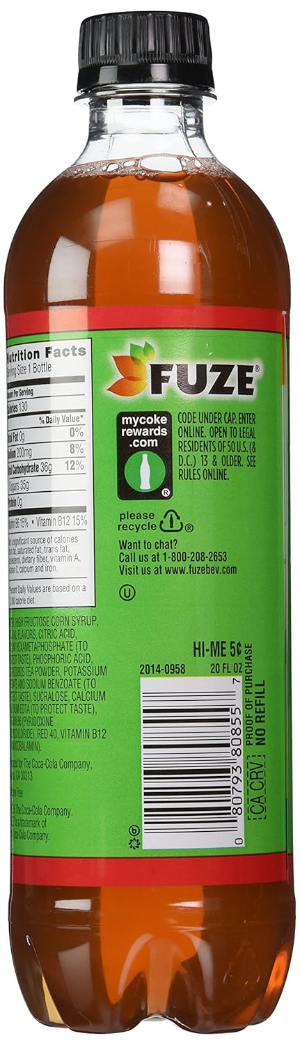 Fuze raspberry iced tea calories. › dennys-menu-nutritionCalories in Denny's - Menu With Nutrition Calories in Denny's. ... Lemonade Iced Tea. 1 container (12 fl. oz) ... Fuze Raspberry Tea. 12 Oz. 110 Cal: Garlic Peppercorn Sirloin Dinner. 9 Oz. 420 Cal: Fuze Raspberry Iced Tea, 30 oz Nutrition Facts - All Menu Price Fuze Raspberry Iced Tea, 30 oz - Nutrition Facts Nutrition Facts Serving Size: 30 oz Amount Per Serving Calories 220 % Daily Value* 0 % Total Fat 0g 0 % Saturated Fat 0g Trans Fat 0g 0 % Cholesterol 0mg 1 % Sodium 30mg 20 % Total Carbohydrates 60g 0 % Dietary Fiber 0g Sugars 60g Protein 0g * Percent Daily Values are based on a 2000 calorie diet. Calories in Fuze Iced Tea and Nutrition Facts - FatSecret Fuze Iced Tea Nutrition Facts Serving Size 12 oz (360 ml) Amount Per Serving Calories 70 % Daily Values* Total Fat 0.00g 0% Saturated Fat - Trans Fat - Cholesterol - Sodium 45mg 2% Total Carbohydrate 19.00g 7% Dietary Fiber - Sugars 19.00g Protein 0.00g Vitamin D - Calcium - Iron - Potassium - Fuze Raspberry Tea Nutrition Facts | Besto Blog T Fuze Iced Tea Raspberry Freestyle Nutrition Facts Fuze Iced Tea Lemon Bottle 20 Fl Oz Foodland Super Market [irp] Caffeine In Fuze Iced Tea Fda S Nutrition Fact Label Proposed Changes What You Need To Know Fuze Iced Tea Lemon Can 12 Fl Oz Bevmo Fuze Iced Tea Green With Honey Flavor 16 9 Fl Oz 12 Count [irp] T Fuze Tea Carbs