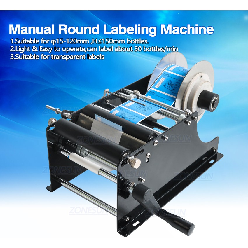 Manual Round Bottle Labeling Machine Adjustable Bottle Labeler Semi Automatic Label Applicator for Bottles 15-120mm