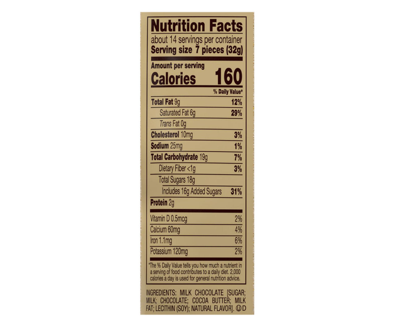 38 hershey kiss nutrition label