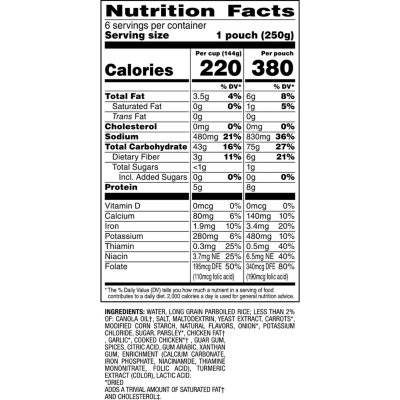 Uncle ben's ready rice nutrition label. Zatarain's Long Grain & Wild Rice, 7 oz - Walmart.com UNCLE BEN'S Ready Rice: Long Grain & Wild, 8.8oz. 39 3.2 out of 5 Stars. 39 reviews. ... Nutrition facts. Refer to the product label for full dietary information ... Does Rice Have Gluten? These Rice Types Are Gluten-Free Jul 12, 2020 · Lundberg offers a wide variety of flavored rice mixes, including flavors such as Organic Sesame, Soy & Ginger Rice, and Organic Turmeric Rice.These are certified gluten-free by the Gluten-Free Certification Organization (GFCO), which requires testing to less than 10 parts per million of gluten. FoodData Central The .gov means it’s official. Federal government websites always use a .gov or .mil domain. Before sharing sensitive information online, make sure you’re on a .gov or .mil site by inspecting your browser’s address (or “location”) bar. Creamy Chicken and Wild Rice Soup Recipe | Allrecipes This is a list of the specific products and amounts I used: low-sodium chicken broth, around 16-20 ounces of diced chicken breasts, Uncle Ben's Quick Cooking Long Grain & Wild Rice, 1/2 cup of flour, 1/2 cup Blue Bonnet margarine, 2 cups 1% milk, 3/4 cup of each carrots and celery, a small diced onion, and around 1/2 tsp minced garlic.