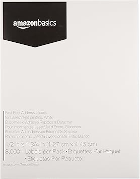 Image Unavailable - Amazon.ca: Low Prices - Fast Shipping This item: AmazonBasics Fast Peel Address Labels for Laser/Inkjet Printers, White, 1/2 x 1-3/4 Inch Label, 8,000 Labels $12.49 100 Sheets of Address Labels 1'' x 2-5/8'' 30up 3000 Labels Compatible with 5160 FBA by OFFICE LABELS $17.48 100 Sheets of Shipping Labels 2'' x 4'' 10up 1000 Labels Compatible with 5163 by OFFICE LABELS $17.48