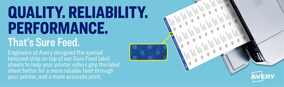 Avery Print to the Edge Shipping Label 1-1/4"x3-3/4" 300 Labels ... Avery 6879 Labels feature proprietary Sure Feed(TM) technology to deliver a more reliable feed through your printer, preventing misalignments and jams · Color- ...