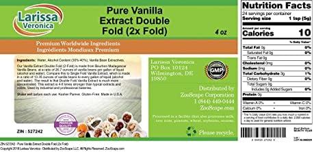 Vanilla extract: Nutritional value, label and calories Vanilla extract Nutrition Facts Serving size 100g Amount Per Serving 288 Calories % Daily Value* 0% Total Fat 0.06g 0% Saturated Fat 0.01g Trans Fat 0g 0% Cholesterol 0mg 0% Sodium 9mg 5% Total Carbohydrate 12.65g 0% Dietary Fiber 0g Total Sugars 12.65g 0% Protein 0.06g 0% Vitamin D 0mcg 1% Calcium 11mg 1% Iron 0.12mg 3% Potassium 148mg Vanilla extract Nutrition Facts & Calories - Self NUTRITION INFORMATION Amounts per 1 tsp (4g) Footnotes for Vanilla extract Source: Nutrient data for this listing was provided by USDA SR-21. Each " ~ " indicates a missing or incomplete value.... Vanilla Extract Macro Nutrition Facts [Food Label Data] Nutritional information for Vanilla Extract. Per 1 cup (208g): 599 Calories | 0.12g Fat | 26g Carbohydrates | 0g Fiber | 26g Sugar | 0.12g Protein | 19mg Sodium | 0mg ... natashaskitchen.com › vanilla-extract-recipeVanilla Extract Recipe - How to Make Vanilla Extract ... Nov 26, 2016 · Apply the FREE vanilla extract labels by printing them on label paper or by gluing them onto the bottles. If printing on the labels, make sure your printer is set to 100% and not “fit to page” which make shrink or stretch labels.