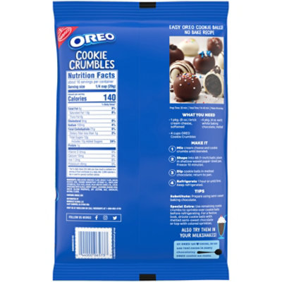 Nabisco Oreo Chocolate Sandwich Cookies Family Size - Giant Food Per 3 Cookies: 160 calories; 2 g sat fat (10% DV); 135 mg sodium (6% DV); 14 g total sugars. Always made with real cocoa. Milk's favorite cookie. Slit appears when opened. At Oreo we love cocoa. So we use real cocoa in every chocolatey Oreo cookie we make. Wonderfilled. SmartLabel. Visit us at: oreo.com or call weekdays: 1-800-622-4726. OREO Chocolate Sandwich Cookies, 14.3 oz - Walmart.com About 12 Servings Per Container Serving Size 3 cookies (34g) Amount per serving Calories 160 * The % Daily Value (DV) tells you how much a nutrient in a serving of food contributes to a daily diet. Calories per gram: Fat 9 • Carbohydrate 4 • Protein 4 Product details