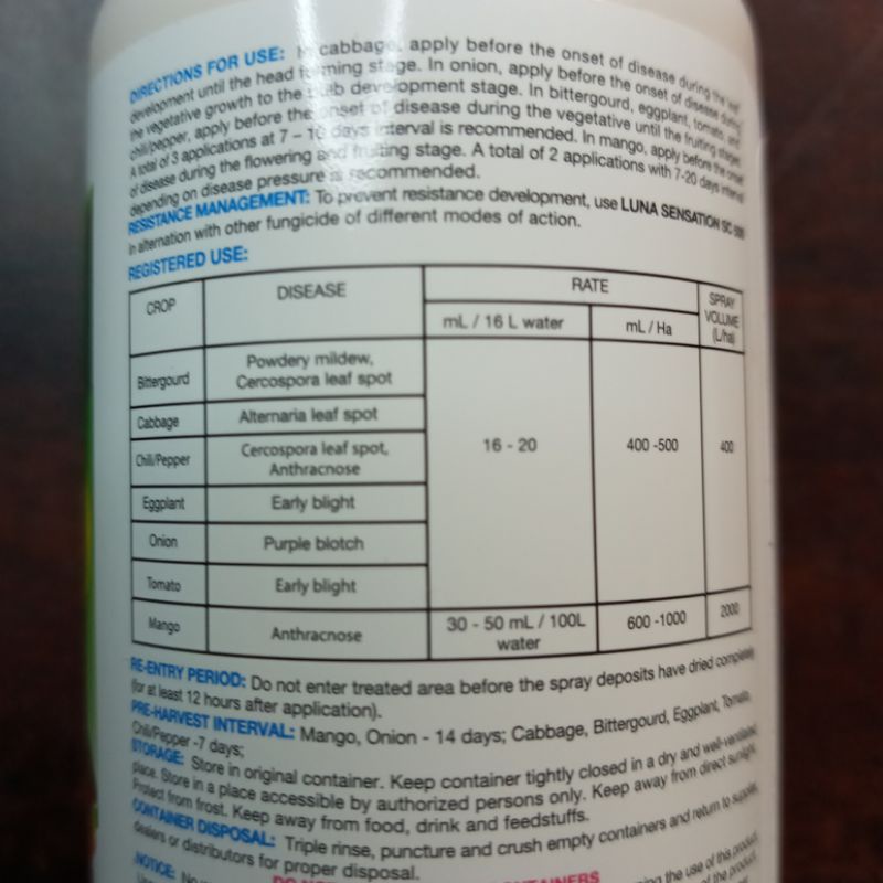 Luna Sensation Label - Bayer LUNA SENSATION is a broad spectrum fungicide with preventative, systemic, and curative properties recommended for the control of certain crop diseases. LUNA SENSATION is best suited for use in a preventative treatment program. SAFETY AND HANDLING SECTION 3: PRECAUTIONS, PROTECTIVE CLOTHING AND EQUIPMENT PRECAUTIONS: US EPA, Pesticide Product Label, LUNA SENSATION, 03/14/2013 Mar 14, 2013 · LUNA® SENSATION is a broad-spectrum fungicide with preventative, systemic, and curative properties labeled for the control or suppression of certain crop diseases. LABELED USES Almond, apple, cherry, peanut, pecan, pistachio, potato, sugarbeet, tree nuts, watermelon, and wine grapes. RESISTANCE MANAGEMENT Luna Sensation | Bayer CropScience | Agworld DBX | Greenbook View the product label for Luna Sensation from Bayer CropScience. See active ingredients, product application, restrictions, and more at Agworld DBX, powered by Greenbook